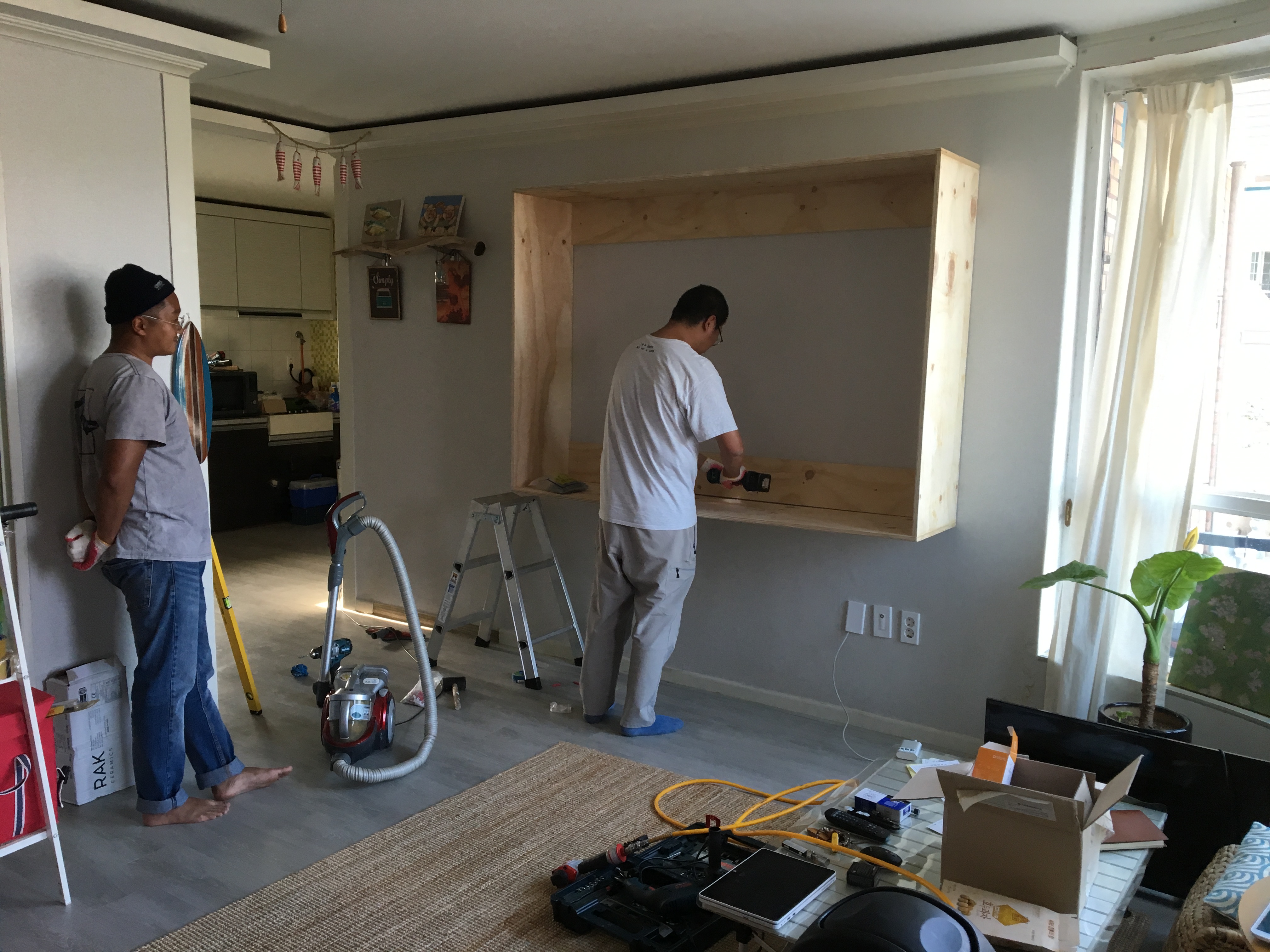 좀 쉬려나 싶었는데, 원태크에게 연락이 왔다. 주변 분들이 인스타그램을 통해서 작업하는 모습을 보고는 셀프 인테리어를 좀 도와달라는 것이었다. 이 작업을 시작으로 양양 죽도해변과 인구리 일대의 여러 곳을 작업했는데, 거의 4~5월 한 달 정도에 걸쳐 매일 양양으로 출퇴근하느라 정신없었다.