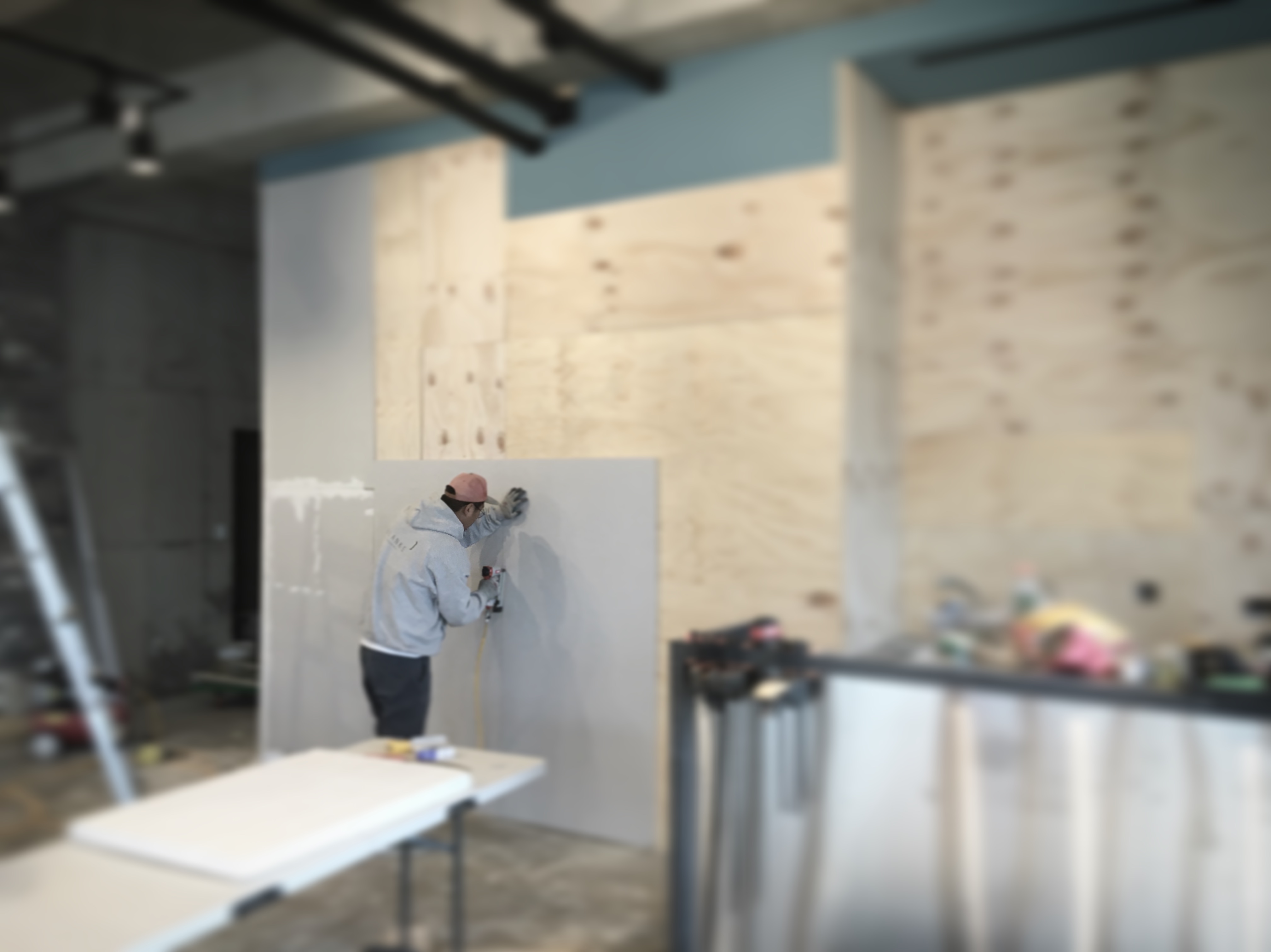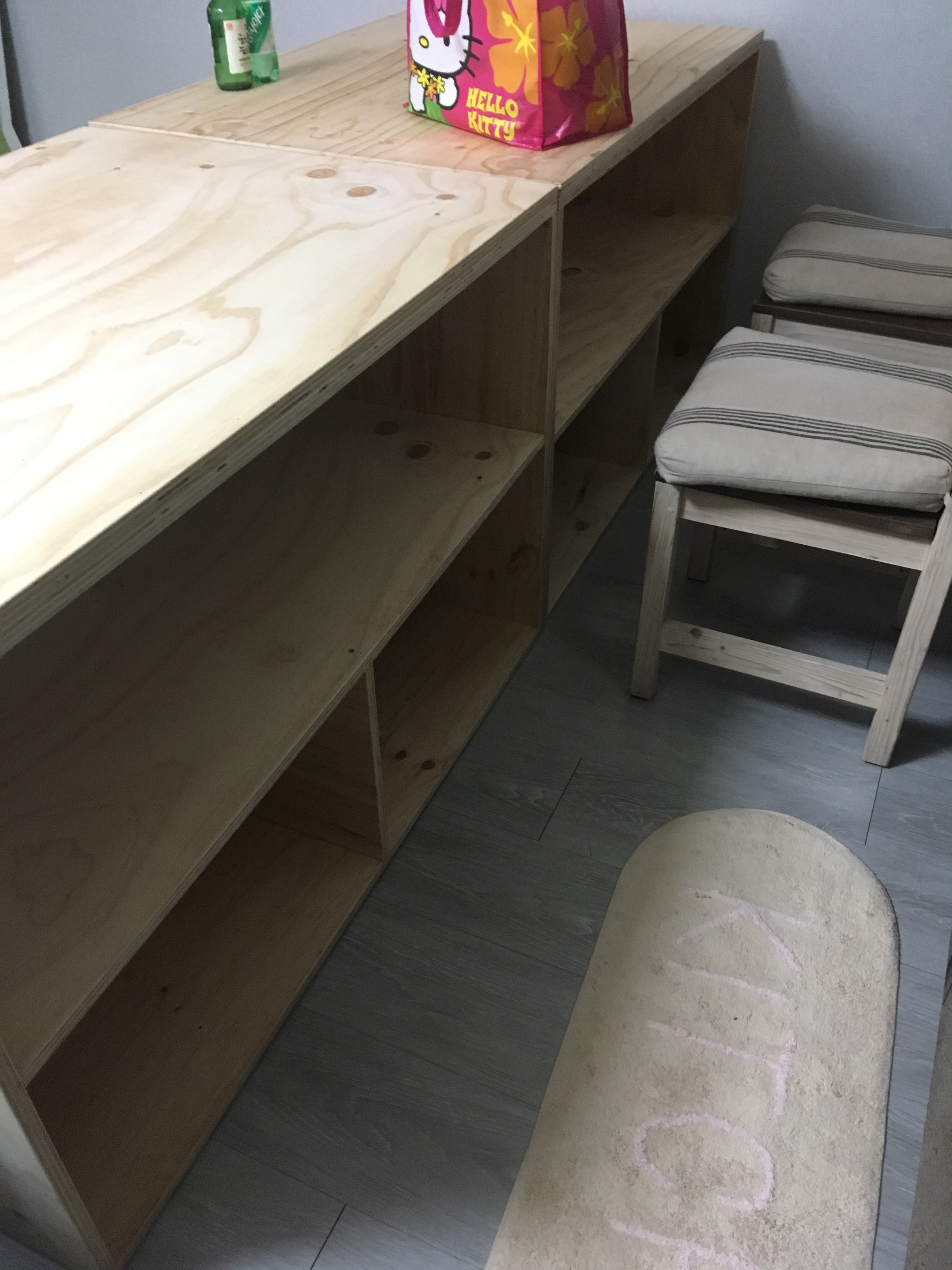 빈 벽에 디스플레이를 위한 선반을 만들고, 화장실 앞쪽으로는 슬라이딩도어를 제작하였고, 벽면을 새롭게 꾸미고 인포데스크와 몇 가지 집기를 제작하는 일이었다.