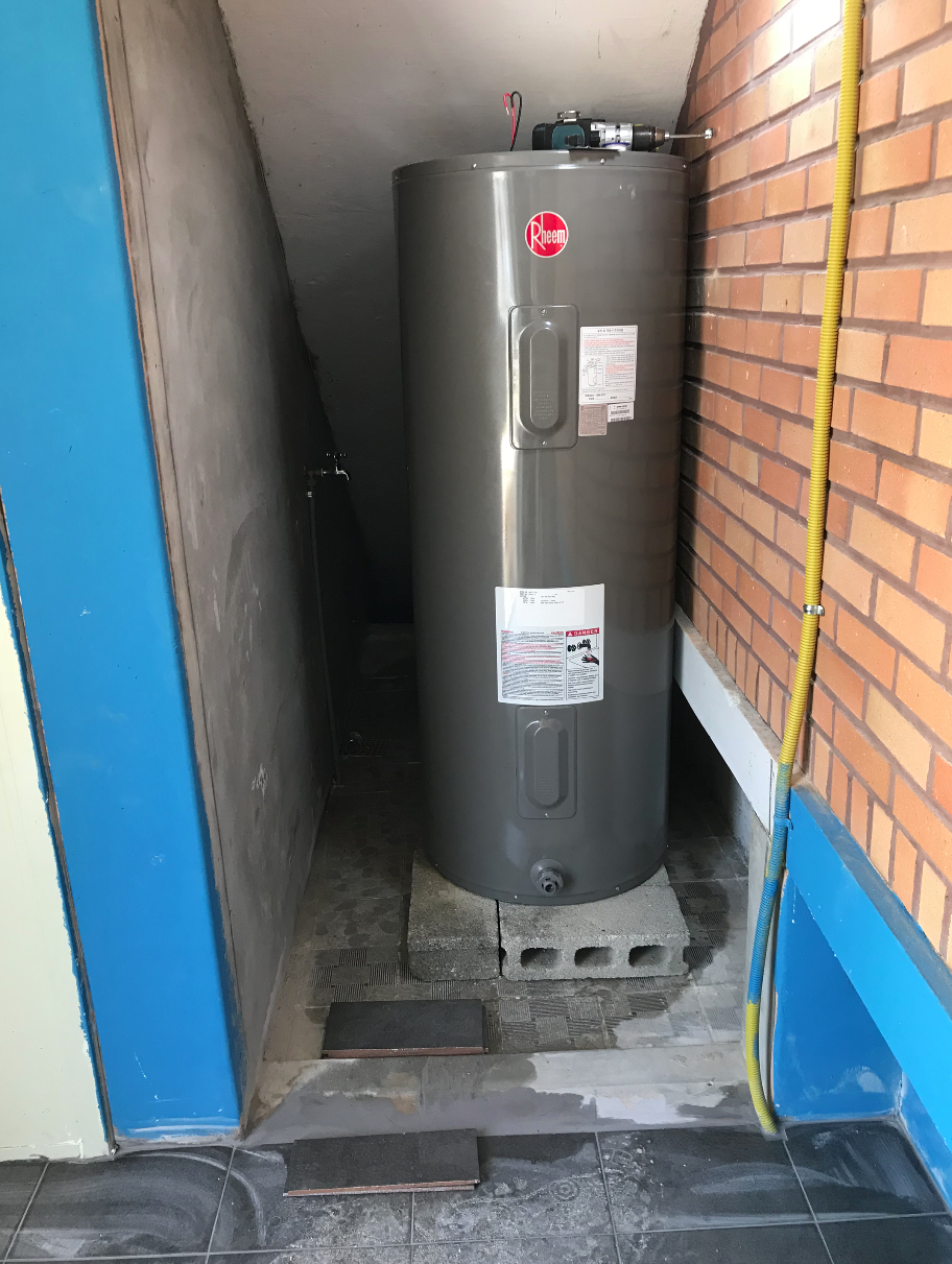 샤워실의 온수기는 내구성 강하기로 소문난 Rheem 사의 제품을 사용했다. 겨울철 동파에 대한 준비만 잘해 둔다면, 이만한 온수기도 잘 없다고 한다. 요즘은 예년에 비해 가격이 많이 오른편.