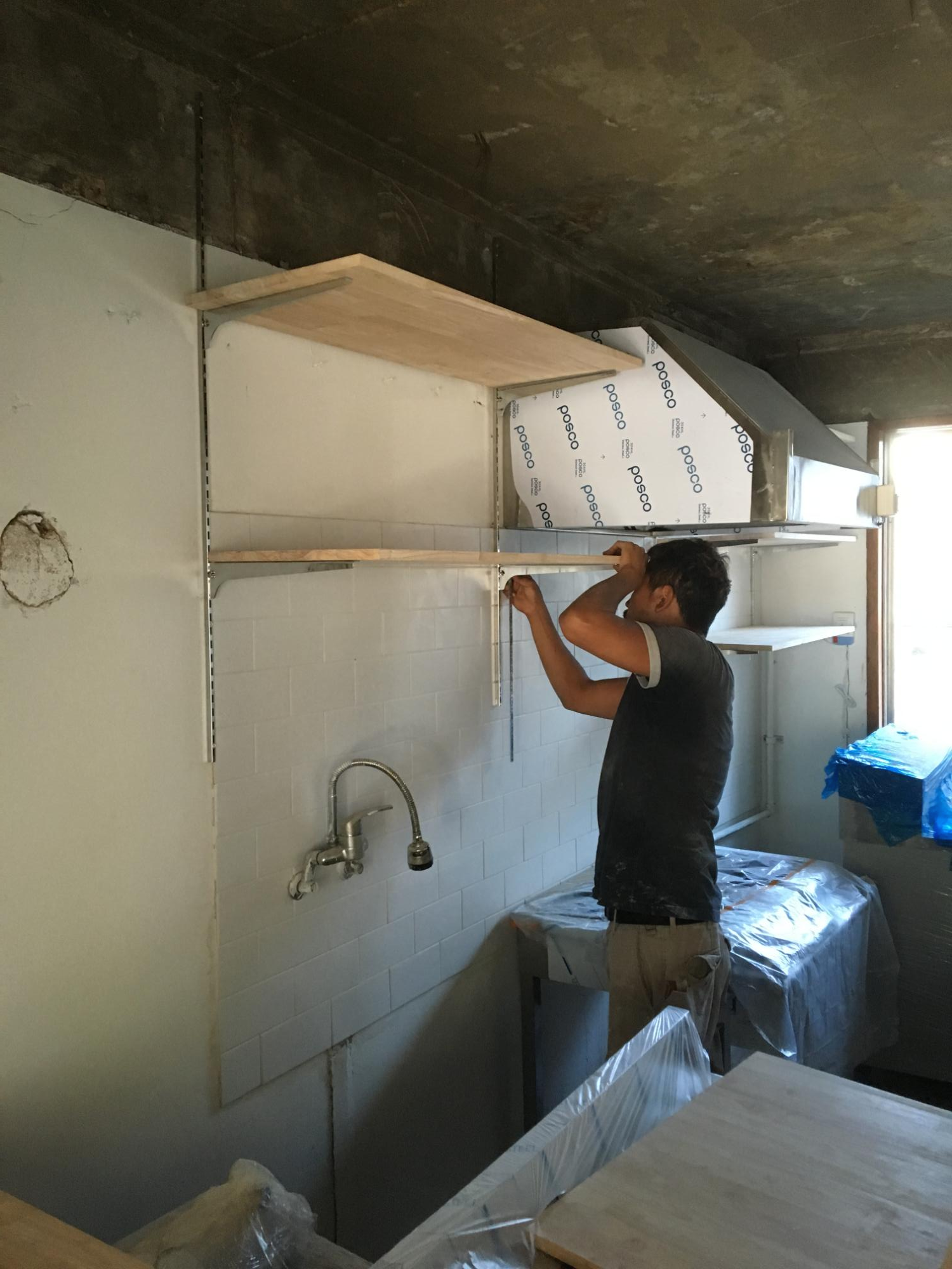 그동안의 작업으로 잠깐 휴식을 하는 사이에 바닥과 벽면은 대충 인부들을 불러서 동생이 마무리를 지어 놓았다. 그리고는 바로 목 작업이 시작되었는데, 좁고 어두운 실내를 그나마 밝은 색의 나무로 채우고, 아기자기하게 꾸며 나가자며 열심히 작업에 임했다.