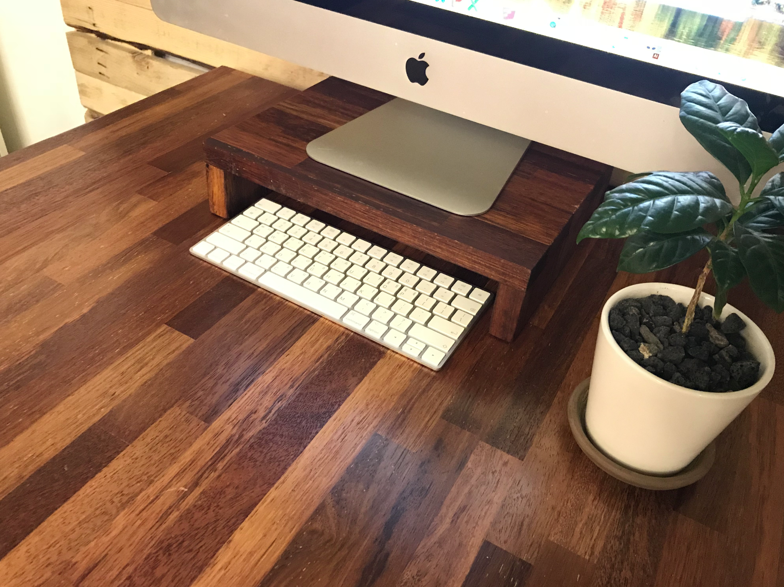 이 또한 자투리로 만든 모니터 받침인데, 덕분에 테이블 위가 정리하기 좋아졌다. 종종 지인들이 만들어 달래서 몇 개 만들어 주었다.