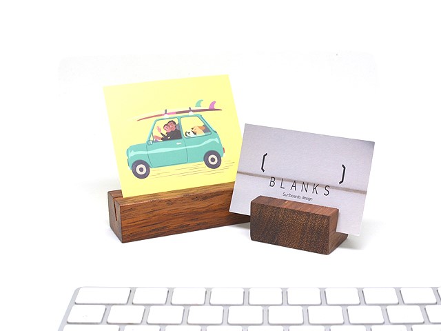이전 작업에서 사용하고 남은 자투리 나무를 활용한 지류 꽂이. 보통 명함이나 스티커 디스플레이에 사용 중이며, 매장에 두었더니 은근 구매를 많이 해 가는 상품이 되었다.