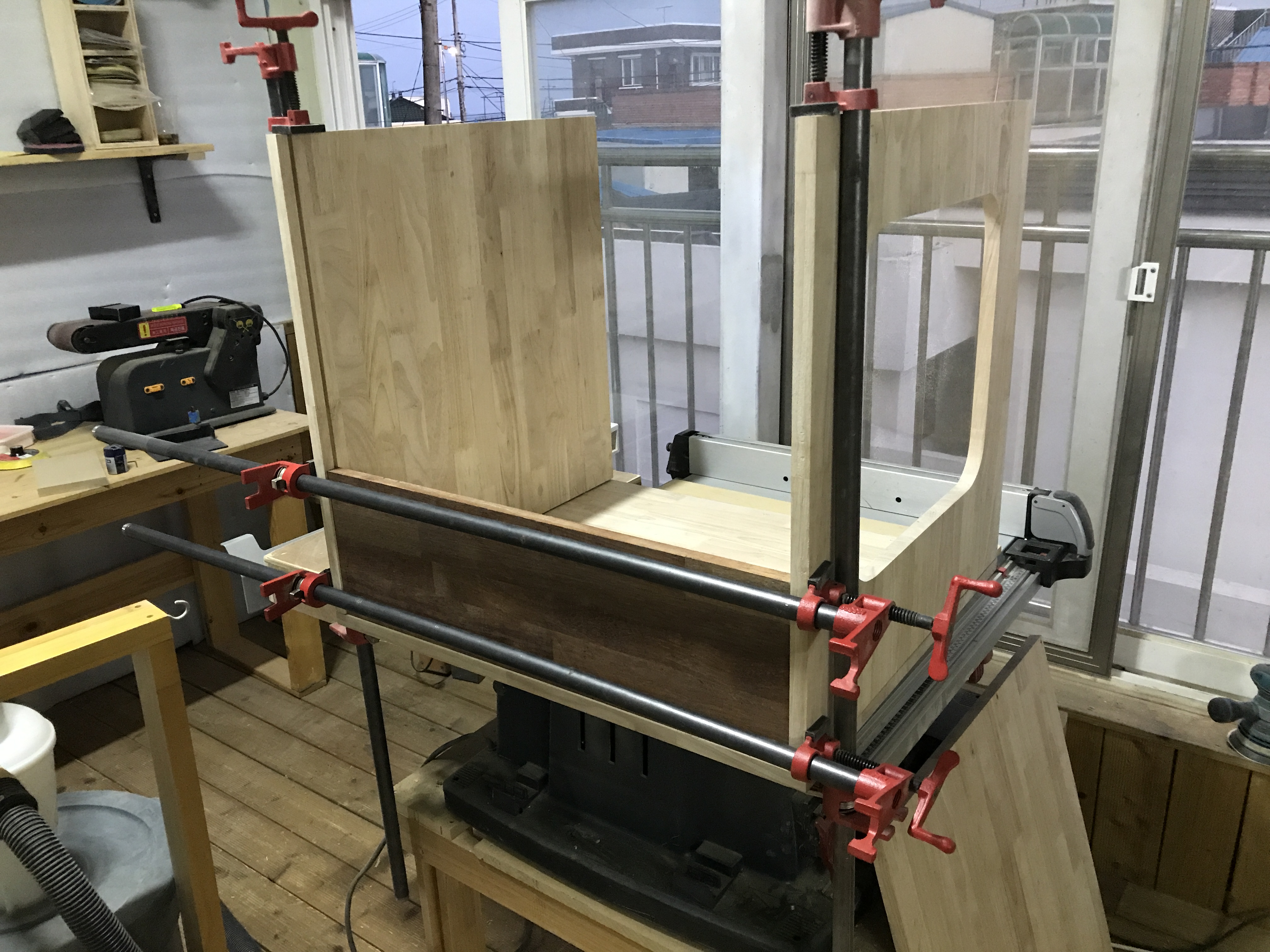 몸체를 적당히 재단 해 놓고 가조립을 해 보았다. 이때 미리 사둔 BESEY 파이프 클램프가 엄청 도움이 되었다.